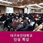 대구보건대학교에서 170명의 재학생들을 대상으로 '명상과 인성' 인성 특강이 이뤄졌습니다. 대구보건대는 특성화 전문대학 육성사업(SCK) 우수대학, 세계적 수준의 전문대학(WCC)으로 선정된 영남권 우수 전문대학이라고 합니다. 인성을 중요한 덕목으로 여기는 보건특성화대학으로서 다양한 인성교육을 진행하는 것으로도 유명한데요. 올해 1학기부터는 명품인성옴니버스 교양교과목을 개설해서 지난 학기에 이어 2학기 인성수업에도 전인교육센터 명상교육을 찾아주셨습니다. 2학기 인성강의는 짧은 시간이지만 마음특강, 명상체험 등 알차게 진행되었습니다. 오후수업이라 강의 초반에는 학생들이 약간 지친 분위기였지만 김미진 강사님께서 학생들과 소통하며 중반부터 생기있게 강의를 이끌어 나갔습니다. 강사님의 열강에 인성특강에 대한 학..